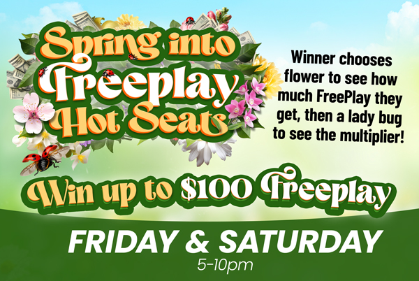 Winner chooses flower to see how much FreePlay they get, then a lady bug to see the multiplier! Friday & Saturday | 5-10pm