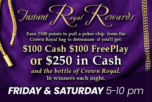 Earn 2,500 points to pull a poker chip from the Crown Royal bag to determine if you'll get: $100 Cash, $100 FreePlay, or $250 in Cash! And of course.. a […]